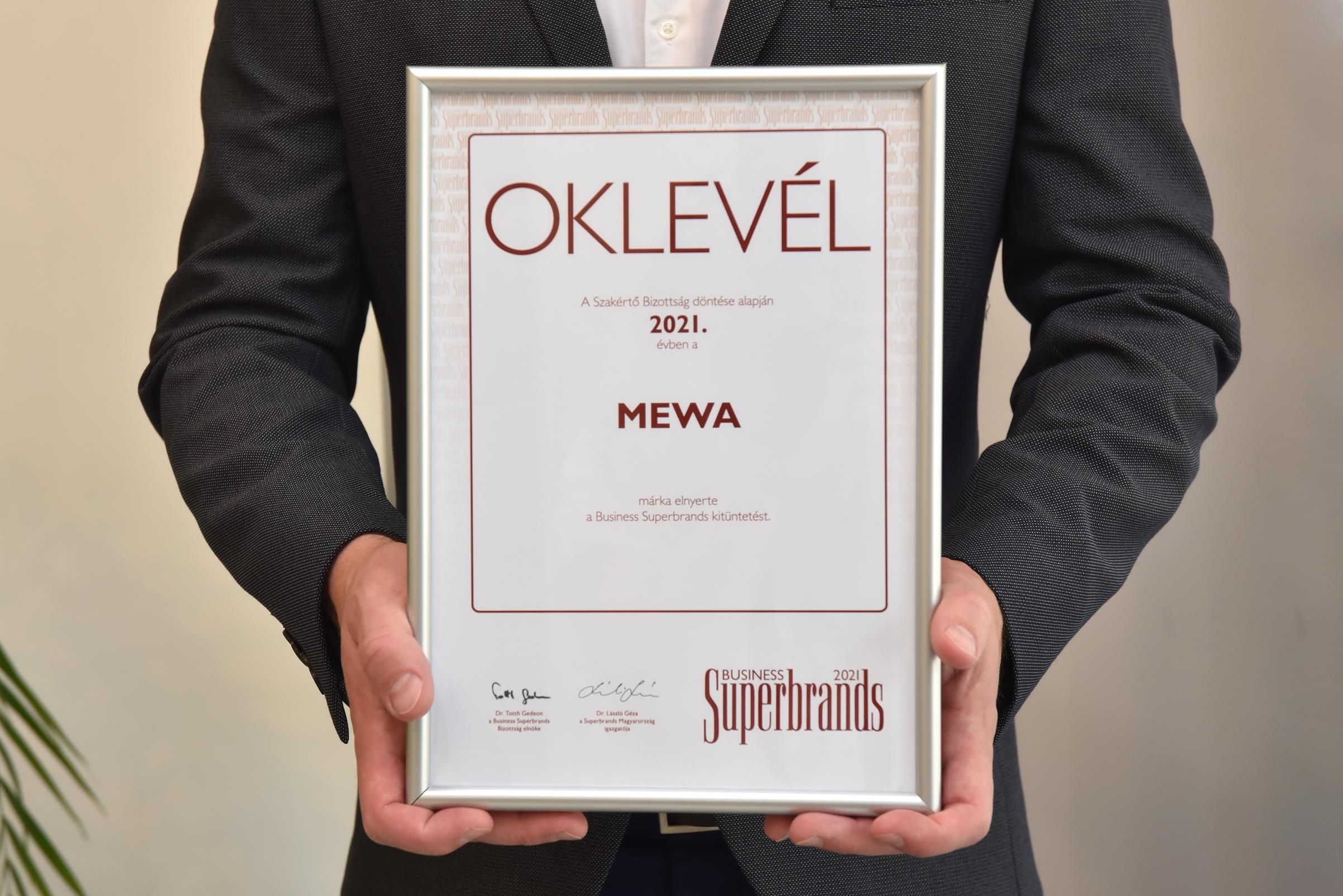 „A zsűri ezzel a sorozatban negyedszer megítélt kitüntetéssel a Mewa márkafejlesztés terén nyújtott kiemelkedő teljesítményét ismerte el” – emelte ki Kövesdy Gábor Business Superbrands márkamenedzser a Superbrands oklevél átadásakor.